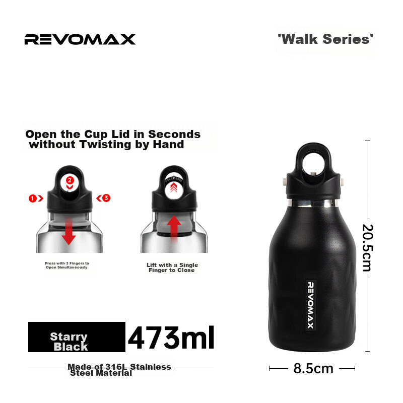 REVOMAX Non-Slip Insulated Cup, 316 Stainless Steel, Student Thermos, Coffee Mug — 473ml, Starry Black: сравнение цен, характеристики, фото, актуальное наличие и цены.