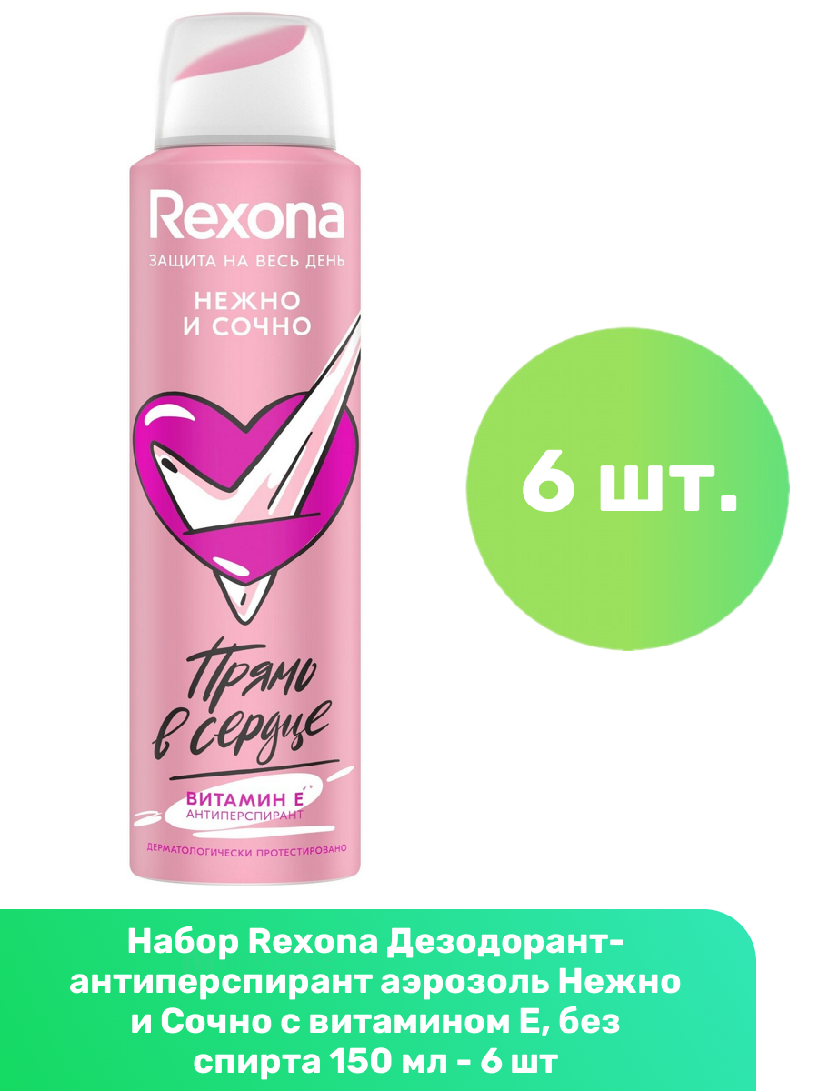Rexona Дезодорант-антиперспирант аэрозоль Нежно и Сочно с витамином Е, без спирта 150 мл — 6 шт: сравнение цен, характеристики, фото, актуальное наличие и цены.