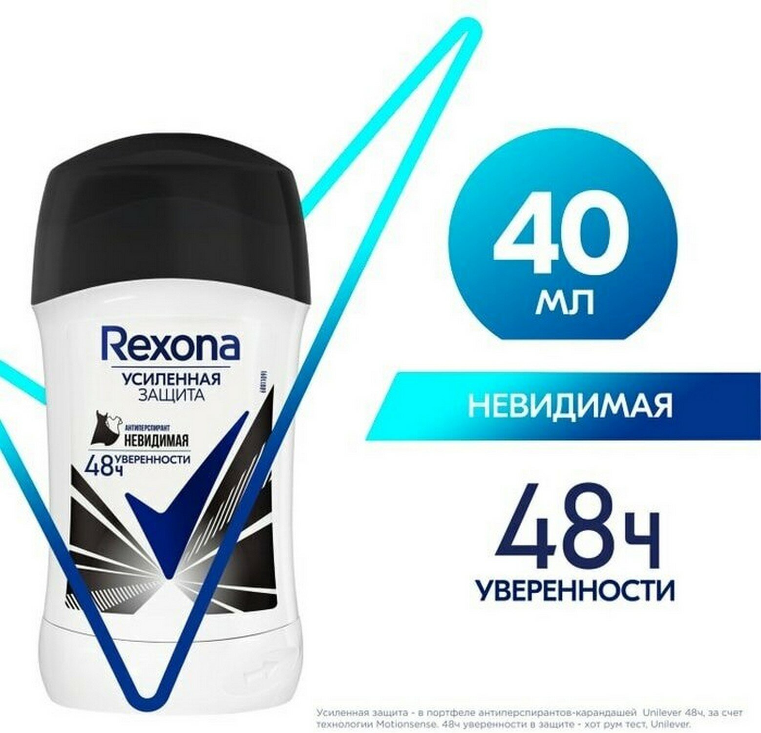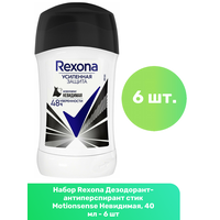 Rexona Дезодорант-антиперспирант стик Motionsense Невидимая на черной и белой одежде, 40 мл — 6 шт: сравнение цен, характеристики, фото, актуальное наличие и цены.