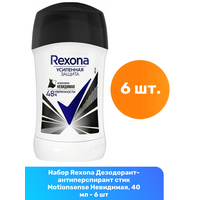 Rexona Дезодорант-антиперспирант стик Motionsense Невидимая на черной и белой одежде, 40 мл — 6 шт: сравнение цен, характеристики, фото, актуальное наличие и цены.