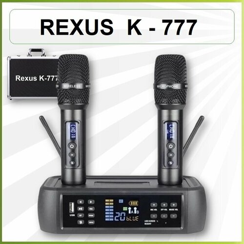 REXUS K-777 - профессиональная радиосистема с двумя аккумуляторными микрофонами. Дальность приема уверенного сигнала до 60 метров. Беспроводные ручные микрофоны оснащены аккумуляторами и заряжаются при помощи кабеля USB-Tape-C. Теперь наконец Вы забудете о вечно нехватающих батарейках.
