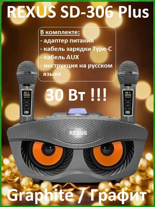 Купить REXUS SD-306 Plus (Gray) — домашняя караоке система, изменение голоса, Bluetooth, USB, AUX с доставкой по всей России.