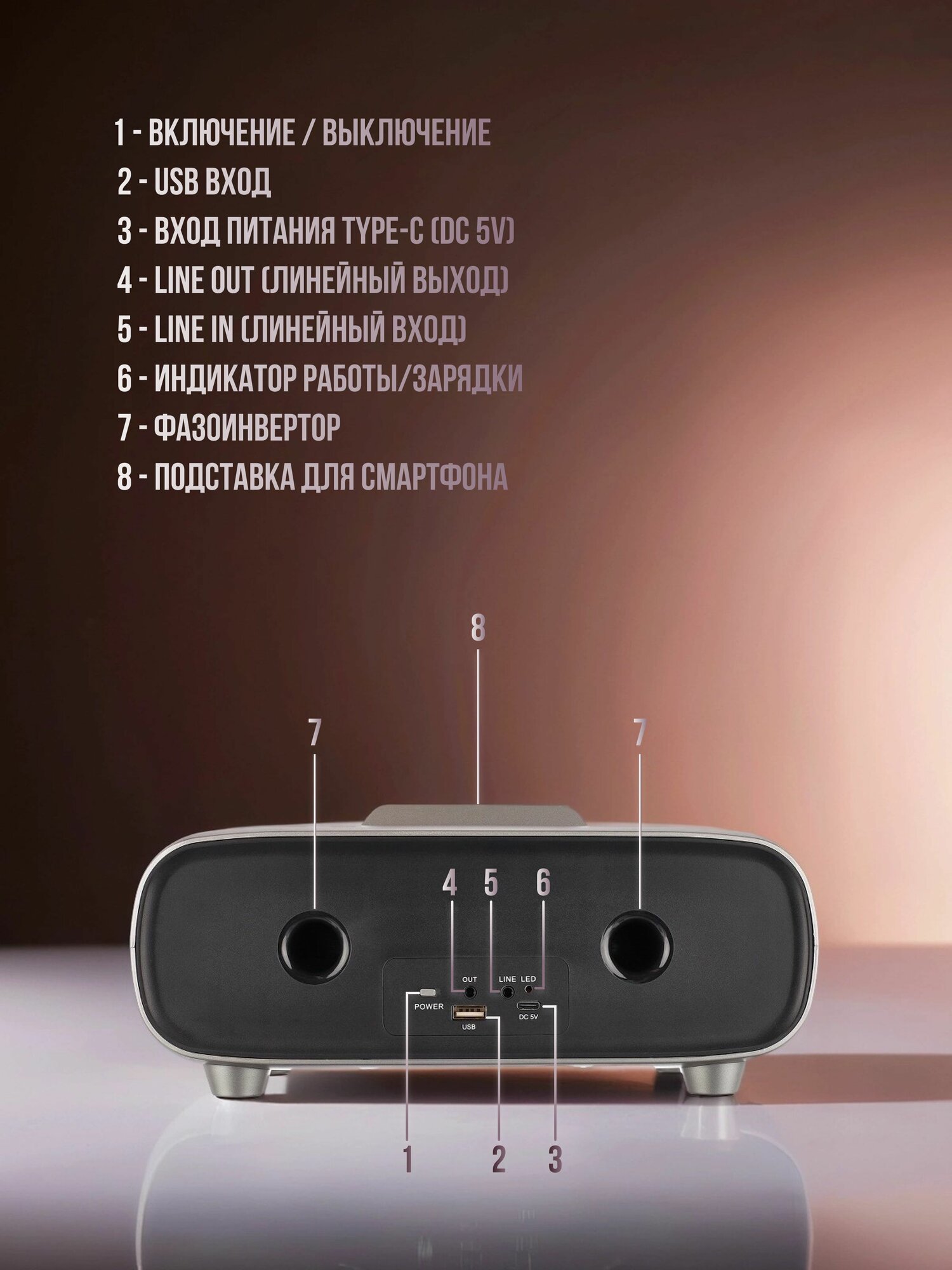 REXUS SD-316 PRO — современная караоке-система для дома и вечеринок REXUS SD-316 PRO — это многофункциональная домашняя аудиосистема, объединяющая качественное звучание, удобное управление и стильный дизайн. Подходит для домашних посиделок, праздников, вечеринок и в качестве подарка. ⸻ Основные особенности • Мощный и чистый звук с глубокими басами и насыщенными высокими частотами. • Три режима подключения: • Bluetooth — быстрое подключение смартфона или планшета; • USB — воспроизведение музыки с флеш-накопителя; • LINE (AUX) — подключение через кабель к любому устройству. • Кнопка MODE позволяет переключаться между режимами одним нажатием. • Эквалайзер объемного звучания — настройка звука под ваш вкус. • Функция приглушения вокала — превращает любую песню в минусовку. • Подставка для смартфона — удобно размещает устройство при использовании караоке-приложений. • Type-C зарядка и встроенный аккумулятор обеспечивают мобильность и длительное время работы. ⸻ Радиомикрофоны 2.4 ГГц В комплект входят два беспроводных микрофона, работающих на стабильной частоте 2.4 ГГц. Особенности микрофонов: • Регулировка громкости и эффекта эхо; • Режимы «Музыка» и «Пение»; • Дополнительные звуковые эффекты: смех, аплодисменты и гул. ⸻ Панель управления 1. Выбор источника (USB / Line / Bluetooth) 2. Приглушение вокала 3. Эквалайзер объемного звучания 4. Регулятор громкости 5. Предыдущий трек 6. Воспроизведение / Пауза 7. Следующий трек 8. Зарядные гнезда для радиомикрофонов 9. Подставка для смартфона ⸻ Разъемы и питание 1. Включение / выключение 2. USB-вход 3. Вход питания Type-C (DC 5V) 4. Line Out (линейный выход) 5. Line In (линейный вход) 6. Индикатор зарядки 7. Фазоинвертор ⸻ Преимущества • Подходит для домашнего использования, вечеринок и праздников. • Можно подключать к усилителю, саундбару или другой колонке через Line Out. • Простое управление и качественная сборка. • Универсальное решение для любителей музыки и караоке. ⸻ REXUS SD-316 PRO — современная караоке-система, которая превращает любое помещение в сцену. Подходит для семейного отдыха, праздников и дружеских встреч.