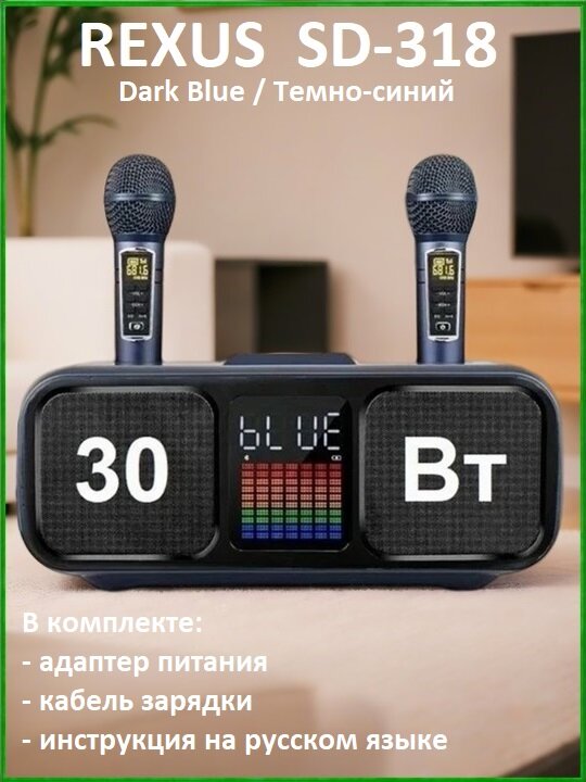 Купить REXUS SD-318 (Dark Blue) — беспроводная система караоке, 2 радиомикрофона, USB, Bluetooth, Optical, Coaxial с доставкой по всей России.