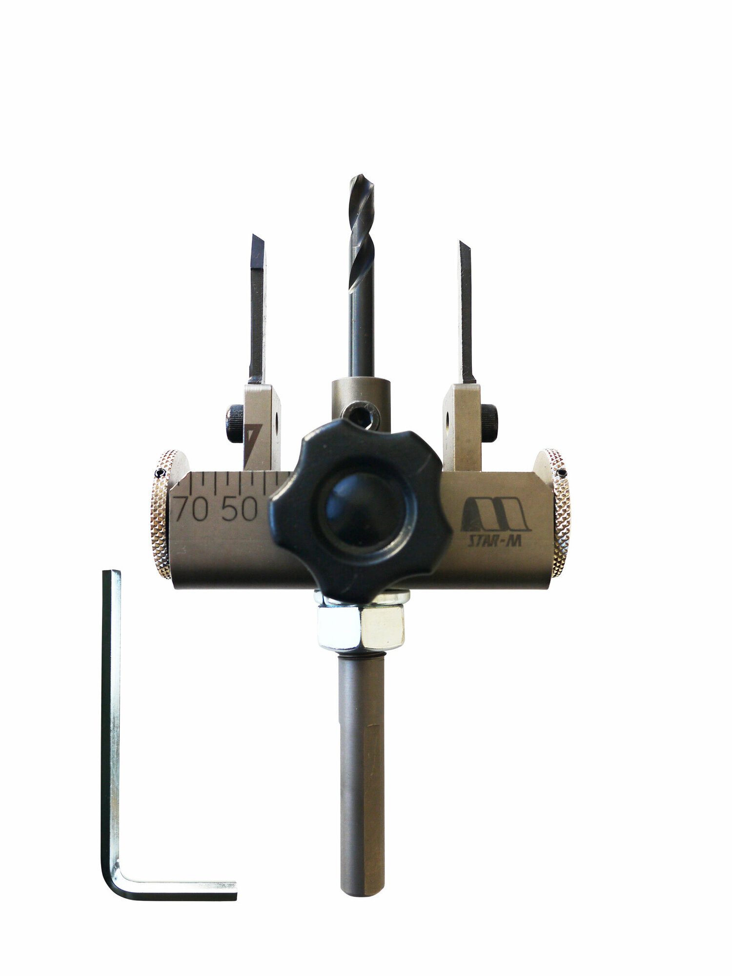 Быстронастраиваемый резак отверстий позволяет сверлить в дереве и в подобных материалах отверстия от 25 мм до 75 мм, не применяя при перенастройке никаких инструментов . Диаметр центрального сверла - 10 мм, глубина сверления с одной стороны - 30 мм, с двух - 60 мм. Толщина лезвий - 3 мм, материал - быстрорежущая сталь.Диаметр хвостовика 10 мм. Масса 528 г. Для уменьшения пылеобразования рекомендуется использовать насадку на дрель для защиты от стружек (поставляется отдельно) Производство: Star-M (Япония)