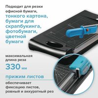 Резак сабельный Brauberg RS10 предназначен для быстрого и аккуратного разрезания бумаги формата А4. Максимальная длина резки составляет 330 мм, что позволяет разрезать документы различных размеров.
