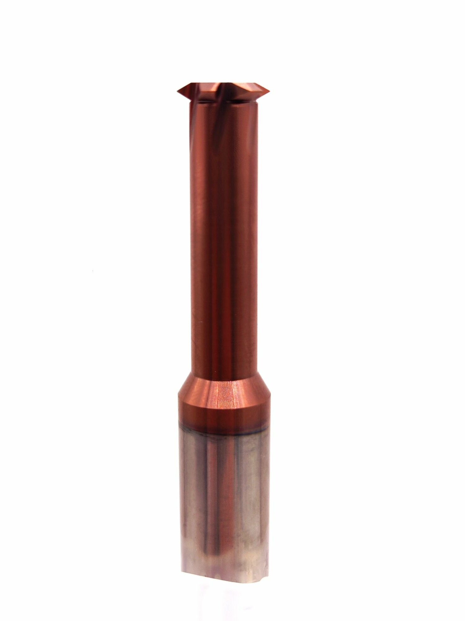 Твердосплавная резьбофреза рассчитана на высокопроизводительную обработку резьбы в труднообрабатываемых материалах. Высокопроизводительная фрезы для нарезания резьбы изготавливаются из твердого сплава, на который наносится покрытие, что увеличивает срок службы и увеличивает стойкость к механическому и термическому износу. Одновитковая концевая резьбофреза изготовлена по стандарту ISO.