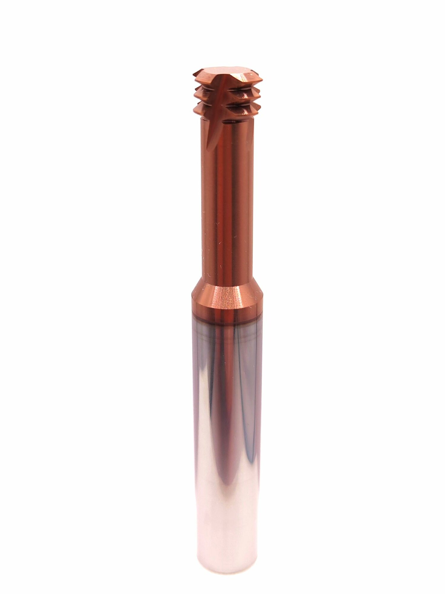 Твердосплавная резьбофреза рассчитана на высокопроизводительную обработку резьбы в труднообрабатываемых материалах. Высокопроизводительная фрезы для нарезания резьбы изготавливаются из твердого сплава, на который наносится покрытие, что увеличивает срок службы и увеличивает стойкость к механическому и термическому износу. Трехвитковая концевая резьбофреза изготовлена по стандарту ISO.