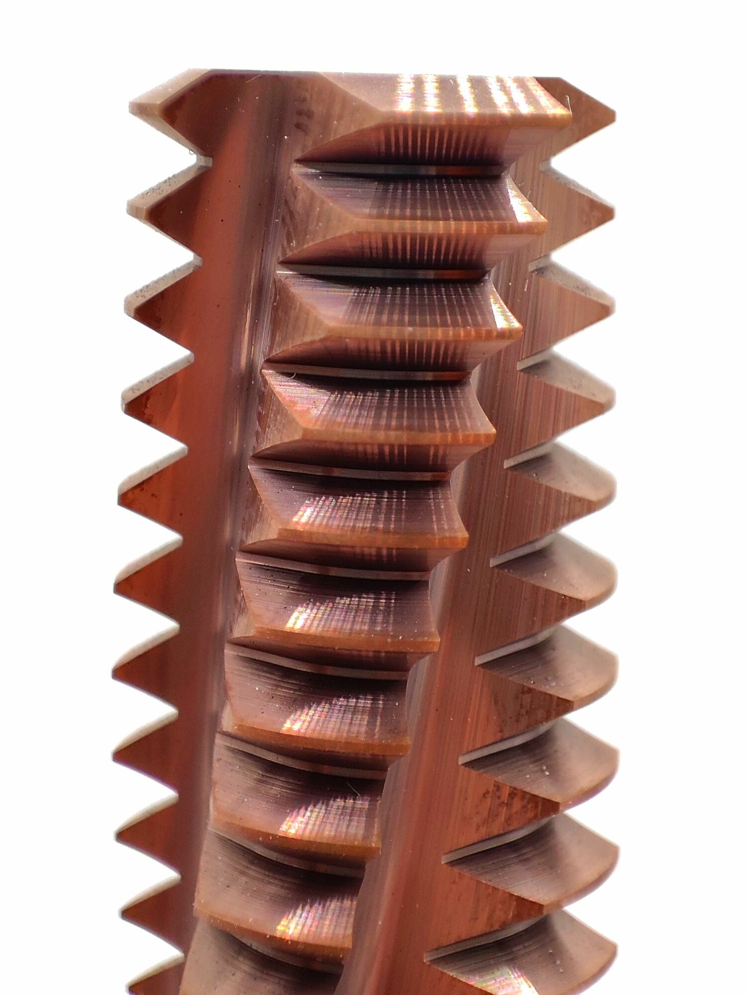 Твердосплавная резьбофреза рассчитана на высокопроизводительную обработку резьбы в труднообрабатываемых материалах. Высокопроизводительная фрезы для нарезания резьбы изготавливаются из твердого сплава, на который наносится покрытие, что увеличивает срок службы и увеличивает стойкость к механическому и термическому износу. Полновитковая концевая резьбофреза изготовлена по стандарту ISO.