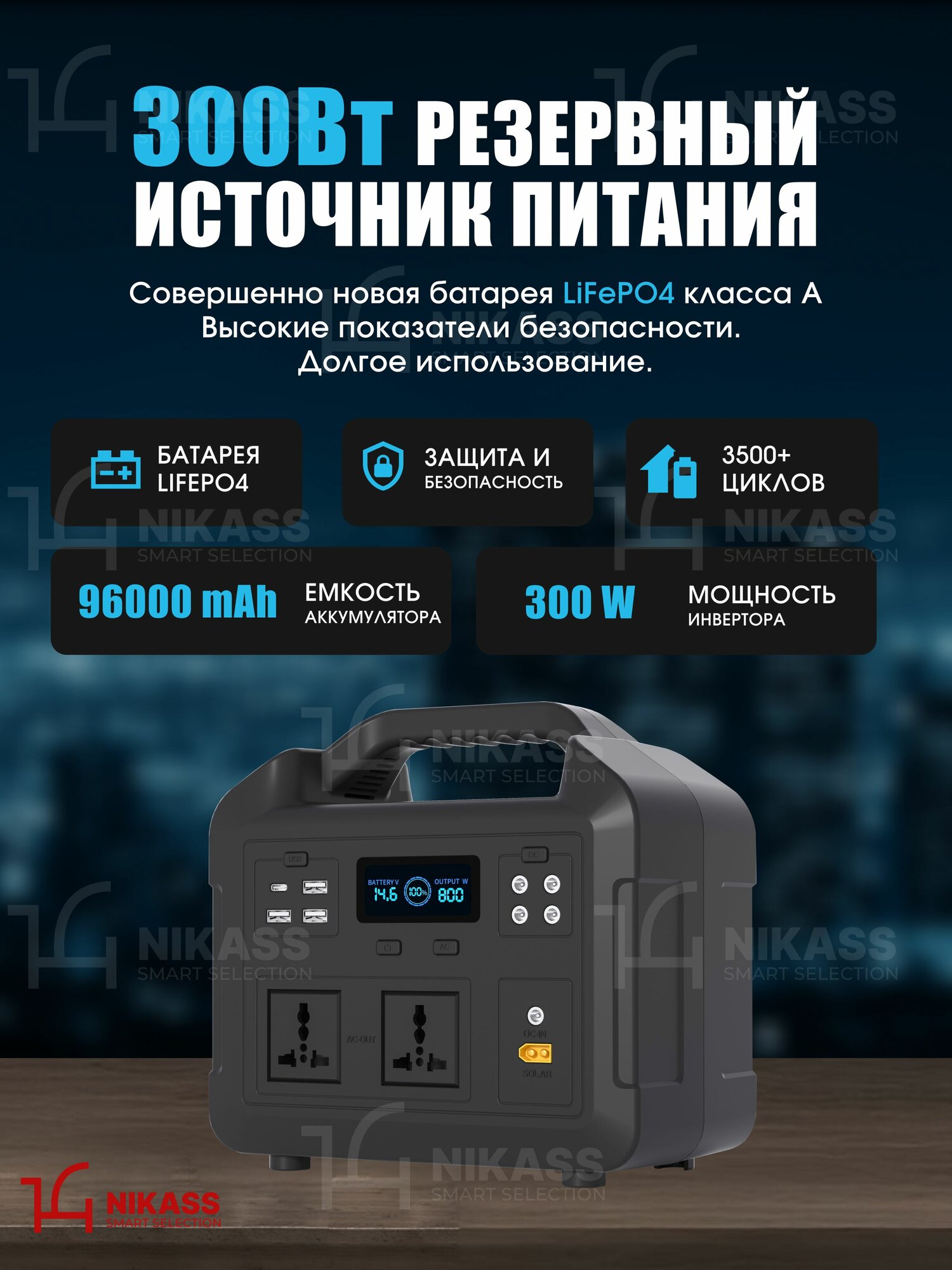 Резервный источник питания 300Вт 96000mAh 307,2Wh NIKASS LiFePo4: сравнение цен, характеристики, фото, актуальное наличие и цены.
