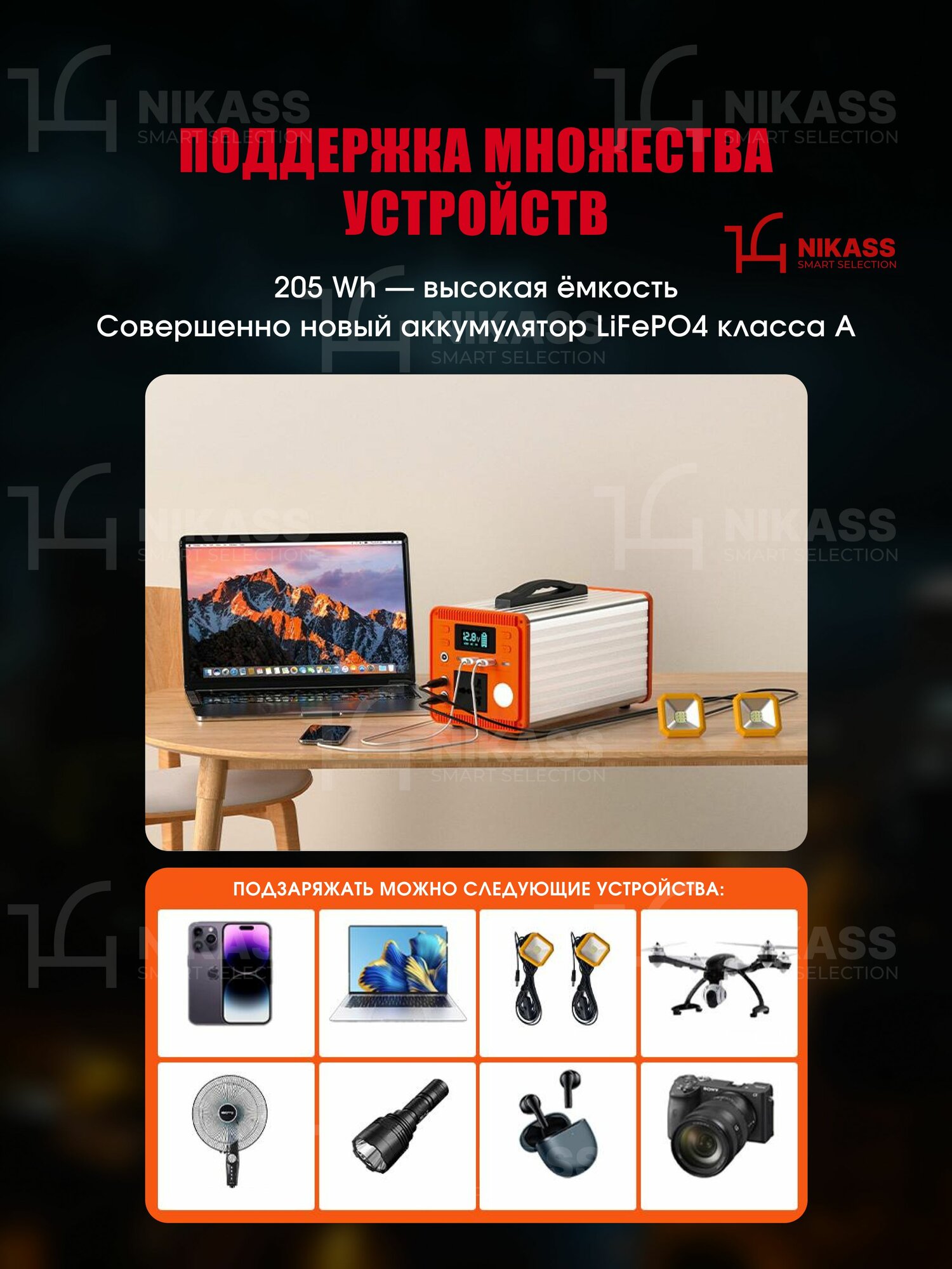 Купить Резервный источник питания NIKASS 300 Вт 64000 mAh 205Wh 220v с доставкой по всей России.