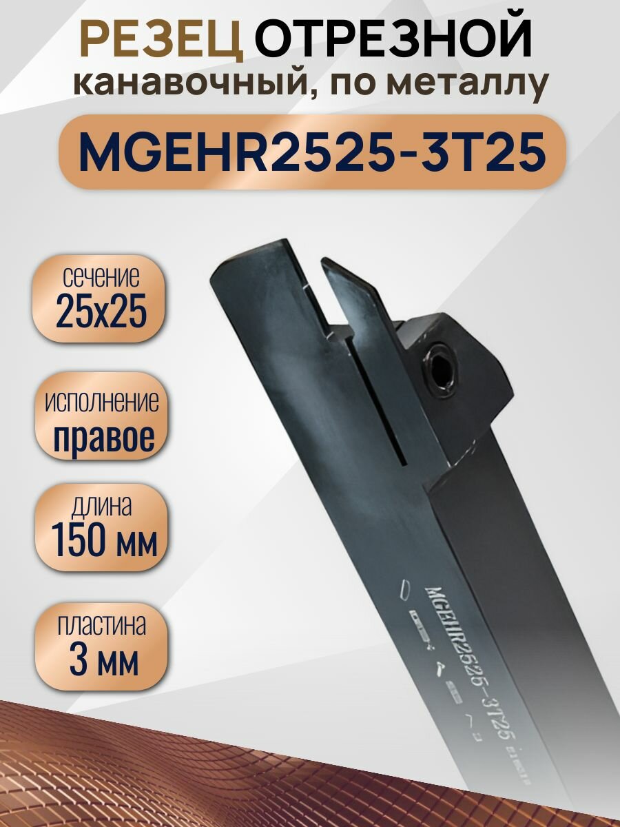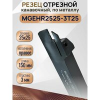 Державка токарная канавочная MGEHR2525-3T25 удлиненная. Система крепления тип D с углом 90° для обработки канавок глубиной до 25 мм и выполнения отрезных работ. Для токарного резца применяются пластины шириной 3 мм типоразмера MGMN, MRMN, QCMB, QPMB.