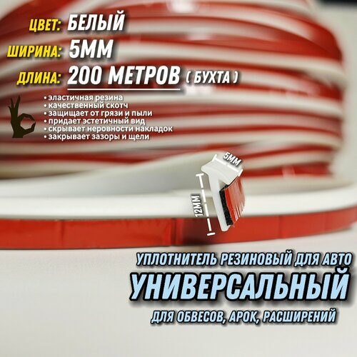 Резинка для обвесов Белый/5мм/200 метров бухта со скотчем. Молдинг для кузова, обвеса, арок, расширения, накладок, порогов, бампера. Уплотнительная лента для тюнинга губы