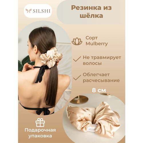 Резинка для волос SILSHI, натуральный шелк, бежево-жёлтая, 8 см: сравнение цен, характеристики, фото, актуальное наличие и цены.