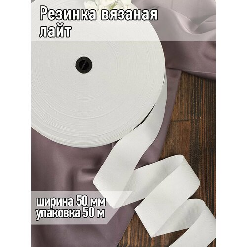 Эластичная вязаная резинка лента (тесьма) - одна из самых популярных и распространенных в швейном производстве резинка, которая применяется при пошиве детской, мужской и женской одежды из самых разных тканей, спортивных изделий, рабочей одежды, обуви, ортопедических изделий, для изготовления поясов юбок. Ширина ленты - 50мм, длина - 50м, плотность - 3,5г, коэффициент растяжимости - 230%.