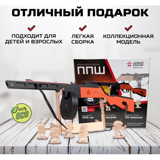 Резинкострел из дерева Армия России ППШ (окрашенный): сравнение цен, характеристики, фото, актуальное наличие и цены.