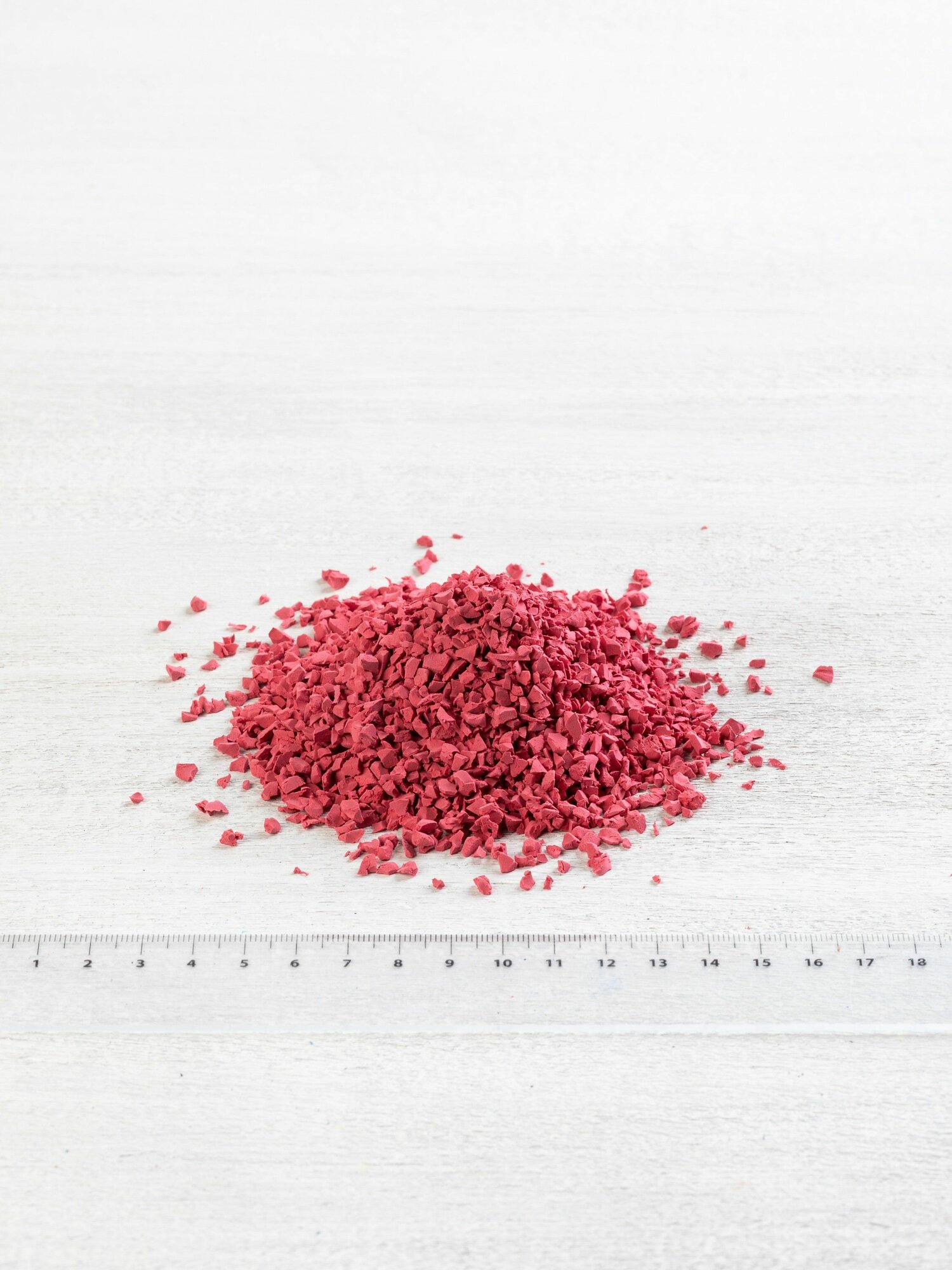 Окрашенная резиновая крошка представляет собой гранулят черной крошки, тщательно окрашенный в различные цвета и оттенки с помощью инновационных технологических процессов. Окрашенная цветная крошка является одним из важных компонентов, необходимых для изготовления искусственного покрытия спортплощадок и беговых дорожек, для покрытия детских и игровых площадок, а также для посыпки футбольных полей, теннисных кортов и иных спортивных площадок из искусственной травы.