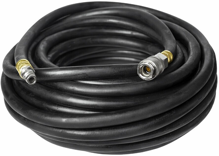 Воздушный резиновый армированный шланг AERO от FoxWeld с фитингами Rapid F - Rapid M, длиной 20 м. Используется для подключения пневмоинструмента к компрессору, достаточная длина оснастки позволяет осуществлять работы на требуемом расстоянии. Увеличенный внутренний диаметр шланга 9 мм обеспечивает лучшую пропускную способность для сжатого воздуха и обеспечивает сохранение максимальной производительности. Шланг класса С - произведен из маслостойкой резины (полиуретан), что обеспечивает ему высокую износоустойчивость и возможность подключения его к воздушной магистрали с содержанием частиц масла при работе в связке с масляным воздушным компрессором. Также благодаря армированию, шланг выдерживает высокие нагрузки по давлению сжатого воздуха до 25 бар и может храниться и эксплуатироваться при температурах от -25 до +70 градусов Цельсия. Концевые муфты типа рапид изготовлены из качественного сплава, устойчивого к коррозии и деформации. Изделие имеет соответствие стандарту GOST ISO 2398-2014.особенности: