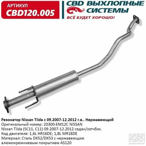 Купить Резонатор Cbd для Nissan Tiida, 120.005 с доставкой по всей России. Резонатор Cbd для Nissan Tiida, 120.005: сравнение цен, характеристики, фото, актуальное наличие и цены.