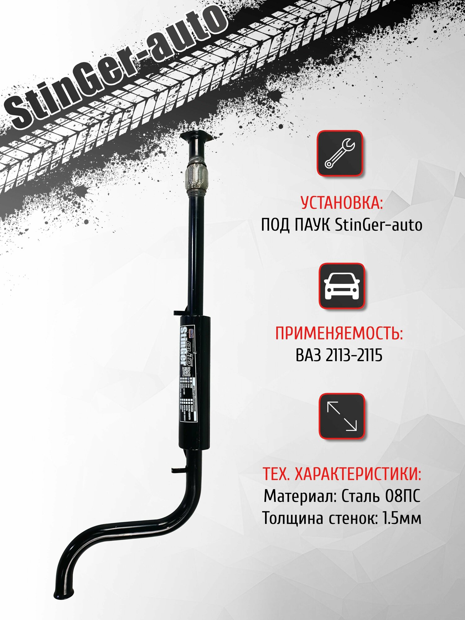 Резонатор StinGer-auto ВАЗ 2113, 2114, 2115 / Под длинный паук, 51 диаметр, с гофрой: сравнение цен, характеристики, фото, актуальное наличие и цены.