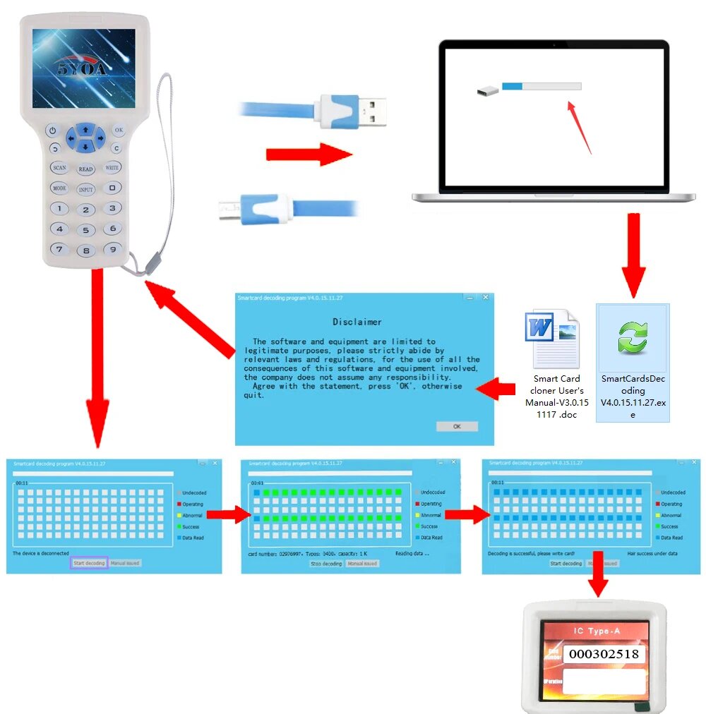Дупликатор RFID, USB, NFC, UID Tag, карта-ключ M1, 13,56 МГц, 10 частот