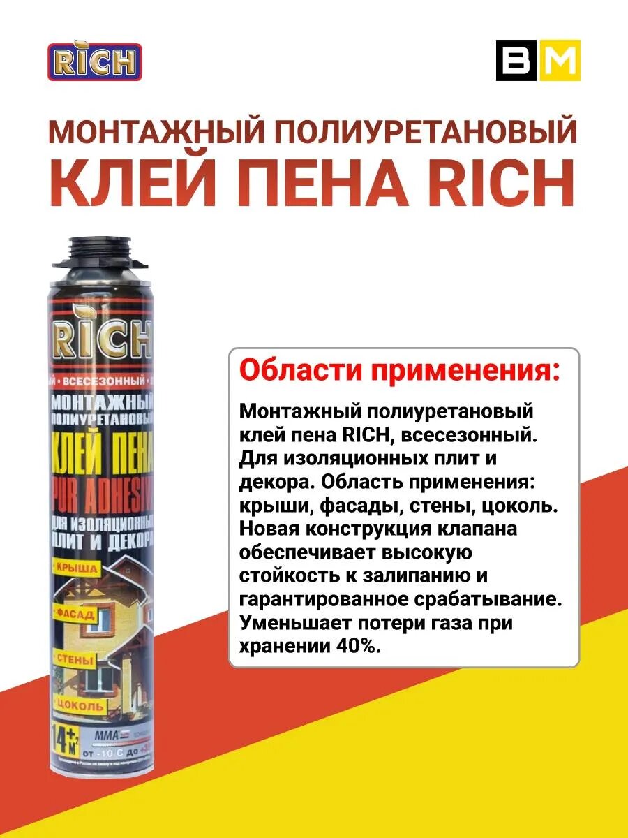 Монтажный полиуретановый клей-пена для изоляционных плит и декора всесезонный. Однокомпонентный полиуретановый вспенивающийся клей имеет низкое расширение и высокую адгезию к большинству строительных материалов, за исключением полиэтилена, полипропилена и тефлона. Рекомендуется для крепления плит из пенополистирола, пенополиуретана, минеральной ваты на бетонные, кирпичные, каменные, металлические, оштукатуренные, битумные и деревянные поверхности в различных системах наружной и внутренней теплоизоляции, при теплоизоляции кровли, а также уплотнения стыков между плитами при этих работах. Идеально подходит для приклеивания гипсокартона, OSB-плит, металлочерепицы, легких декоративных элементов, сборки деревянных конструкций. Существенно ускоряет отделочные работы, экономичен и прост в использовании. Аэрозольная форма выпуска обеспечивает комфорт и чистоту при работе.