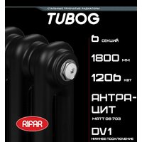 Rifar Радиатор стальной трубчатый TUBOG 2180 6 секций, подключение нижнее с термоклапаном, DB703 Антрацит: сравнение цен, характеристики, фото, актуальное наличие и цены.