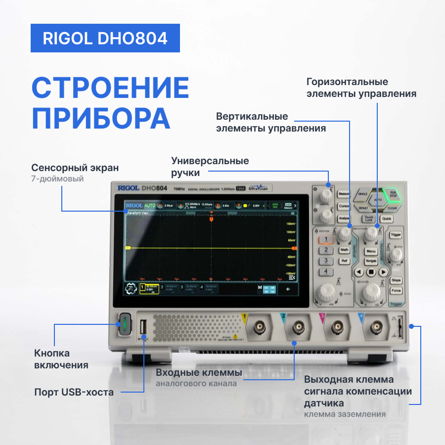 RIGOL DHO804 4-канальный цифровой осциллограф с частотой 70 МГц, 12 бит, 1,25 GSa/сек, глубина 25 Мбит/с: сравнение цен, характеристики, фото, актуальное наличие и цены.