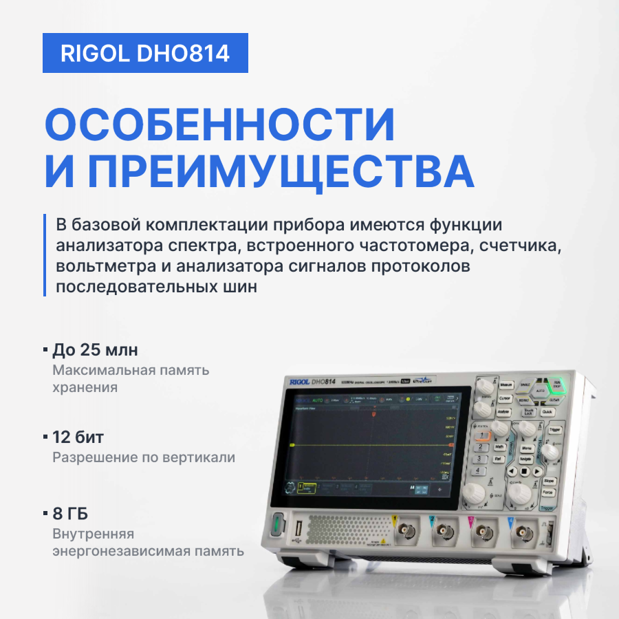 RIGOL DHO814 цифровой осциллограф, 4 канала, полоса пропускания 100 МГц, Госреестр СИ: сравнение цен, характеристики, фото, актуальное наличие и цены.