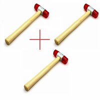 Молоток изготовлен из прочного пластика, что гарантирует его долговечность и надежность в использовании. Деревянная ручка молотка обеспечивает комфортное и безопасное использование инструмента.