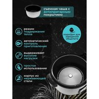 Наличие надежного антипригарного покрытия, благодаря которому рис не пристает к чаше; Вмещает большой объем;
