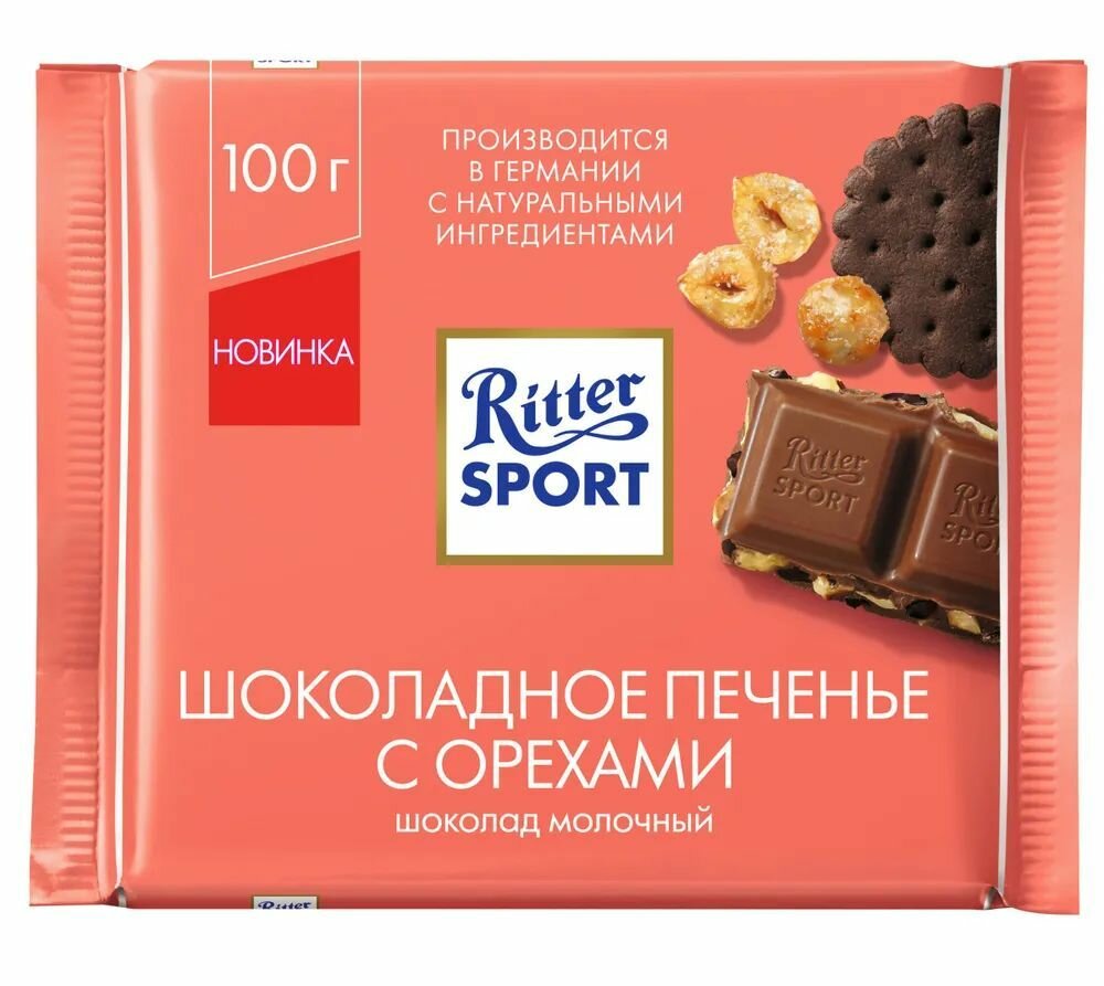 Молочный шоколад Ritter Sport Шоколадное печенье с орехами, 12 шт по 100 гр, Блок: сравнение цен, характеристики, фото, актуальное наличие и цены.