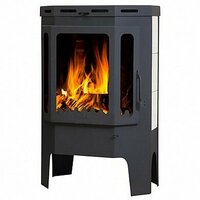 Печь-камин Бавария Призматик пристенно-угловой предназначена для обогрева помещения объемом до 240 куб. м. Она изготовлена из металла, но внутри топка выложена шамотным кирпичом. С одной стороны, шамот защищает металлические стенки от прогорания, с другой - не дает теплу уходить, повышая качество сгорания дров. Топочная дверка с большим жаростойким стеклом позволяет наблюдать за тем, как горят дрова. Стекло не будет коптиться при нормальной тяге и использовании сухих дров. Над топочной дверцей у печи находится регулировка подачи воздуха, чтобы стекло дольше оставалось чистым. И снизу находится рычажок подачи воздуха в топку, которым регулируется интенсивность горения.