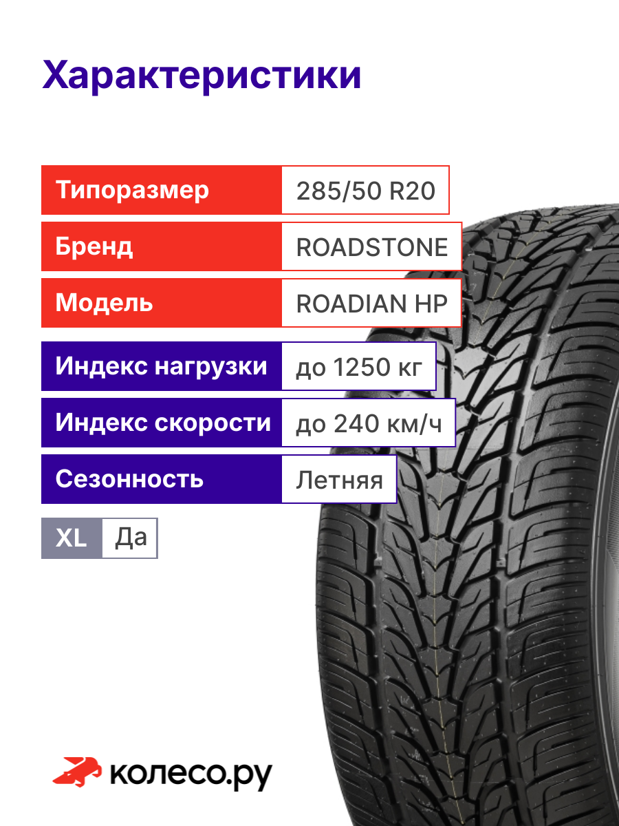 Шины летние Роудстоун ROADIAN HP 285/50 R20 116V XL нешипованная летняя резина: сравнение цен, характеристики, фото, актуальное наличие и цены.