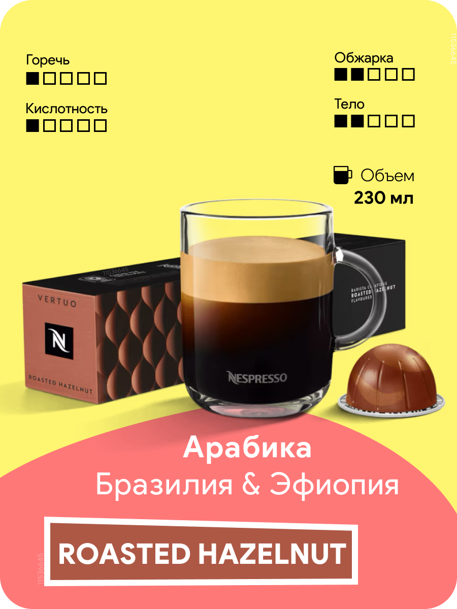 Кофе Nespresso Vertuo ROASTED HAZELNUT, объем 230 мл, упаковка 10 капсул