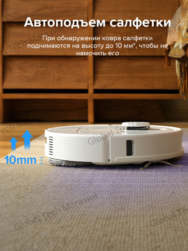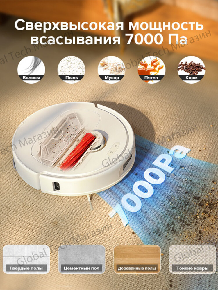 | Особенности конструкции | акселерометр, встроенные часы, гироскоп, датчик TOF, датчик перепада высоты, дисплей, емкость для воды в базе, индикатор заполнения пылесборника, лидар, мусоросборник в базе, мягкий бампер, подсветка дисплея |