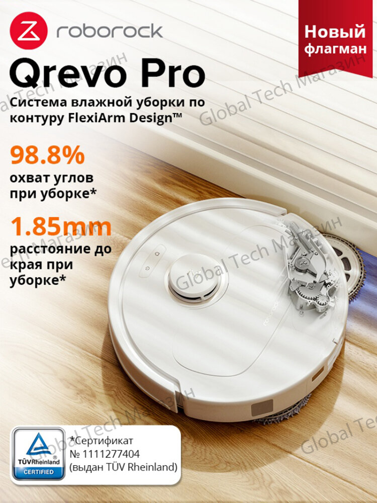 Робот-пылесос Roborock Q Revo Pro(RU Версия), Белый, авто стиркой салфеток 60℃, Система FlexiArm Дизайн, Roborock/siri: сравнение цен, характеристики, фото, актуальное наличие и цены.