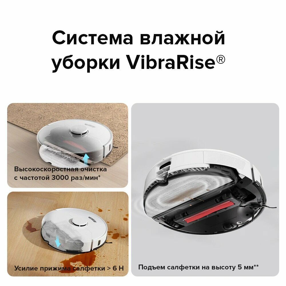 | Дополнительная информация | мойка и сушка салфетки, технология VibraRise, система всасывания Roborock HyperForce, навигация PreciSense LiDAR, автоматическое поднятие салфетки, блокировка от детей, резиновая щётка |