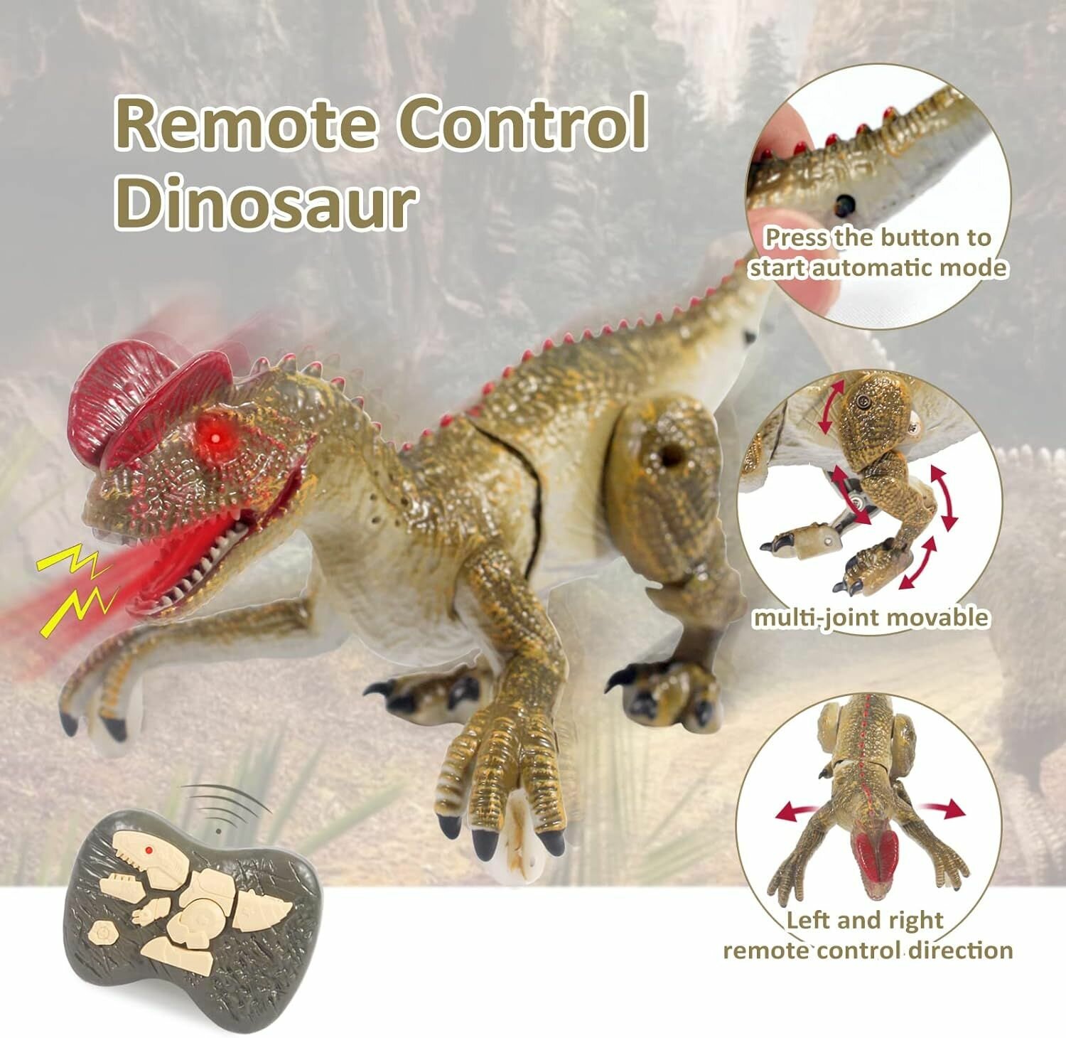 Купить Робот динозавр радиоуправляемый Дилофозавр, 18 см, с аккумулятором / Динозавр на пульте управления с доставкой по всей России.