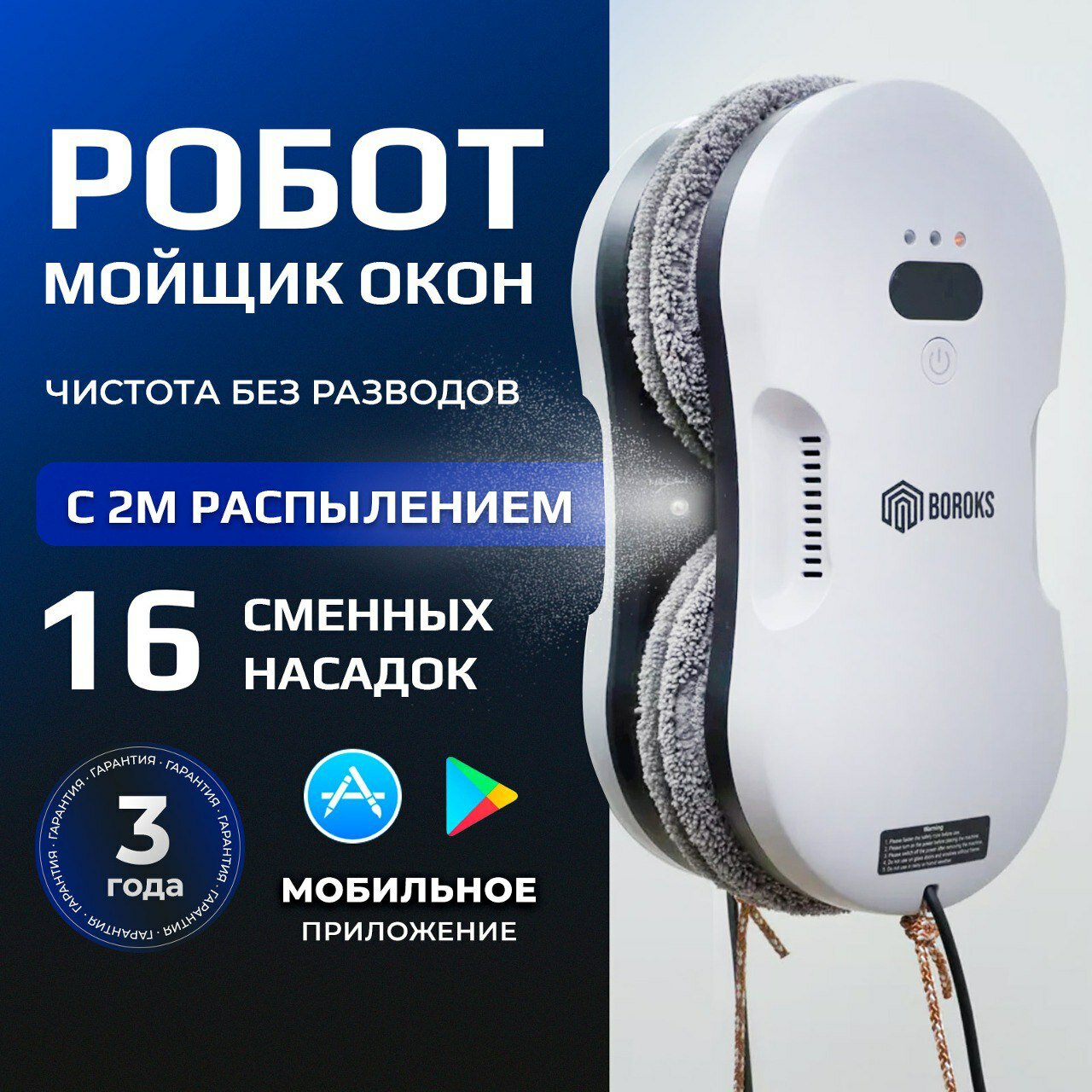 Купить Робот для мойки Boroks B17 окон автоматическое распыление воды со сменными салфетками 16 шт, робот мойщик окон, стеклоочиститель для окон, робот для мойки окон, робот мойщик окон с распылением, робот пылесос для окон, робот для стекол с доставкой по всей России.