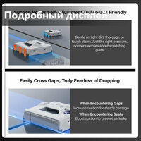 | Особенности | автоматическая остановка, автоматическое определение зоны уборки, звуковая индикация, мойка безрамных поверхностей, обход препятствий, светодиодная индикация |