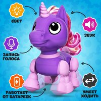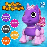 Купить Робот единорог «Питомец» IQ BOT, интерактивный: с записью звуков, реагирует на хлопки, звук, свет, на батарейках, фиолетовый с доставкой по всей России.