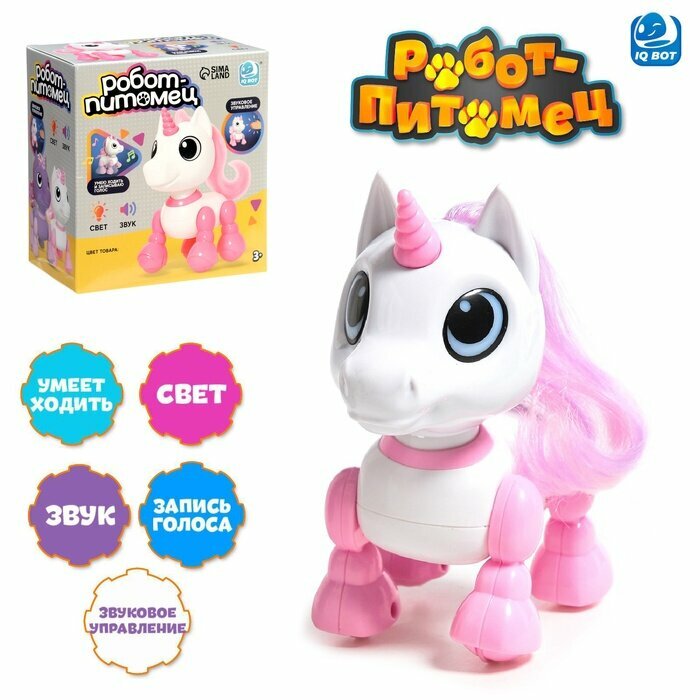 Игрушка оснащена звуковыми датчиками. Питомцем можно управлять с помощью звуков: