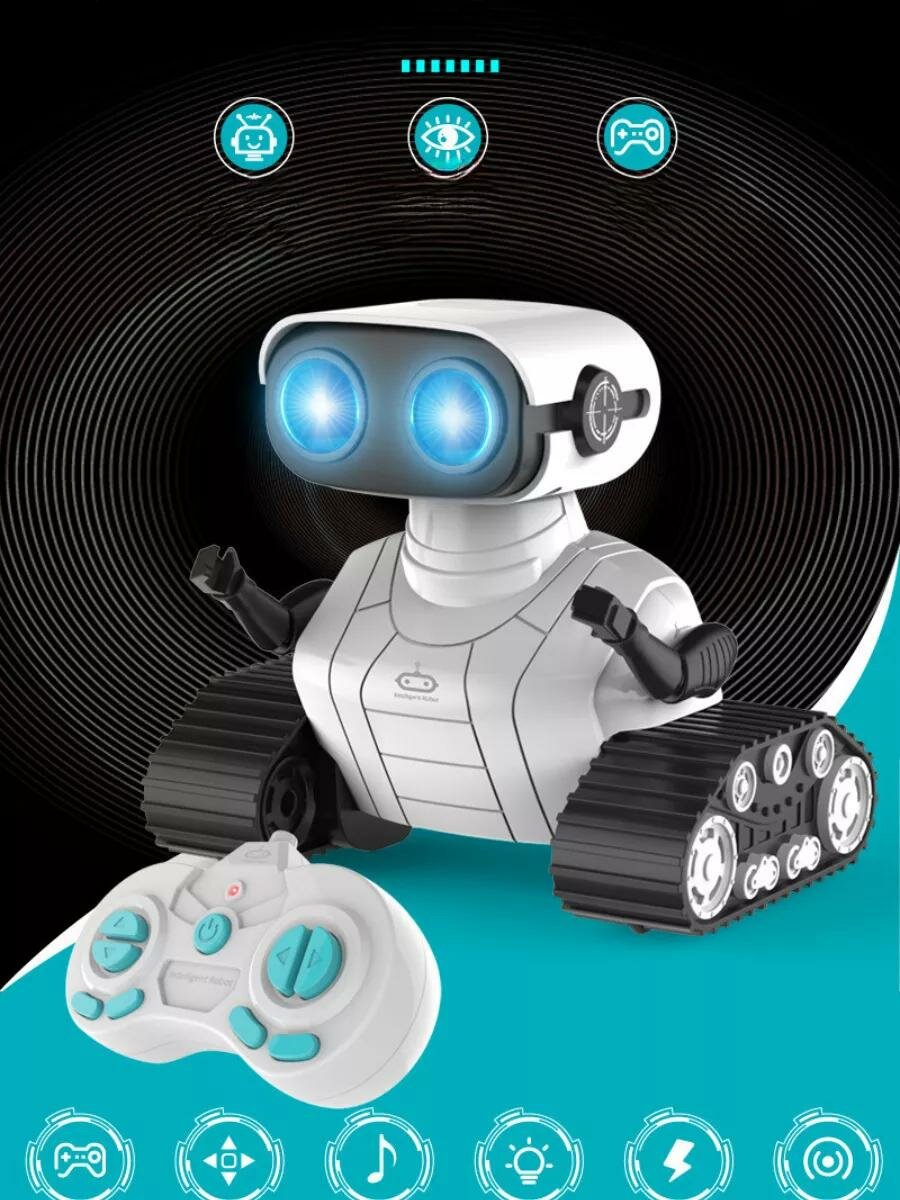Интерактивная игрушка для детей, которая обязательно понравится мальчикам и девочкам. Этот умный робот станет настоящим другом благодаря своим многочисленным функциям. Радиоуправляемая игрушка - маленький робот Валли, управляемый с пульта, способствует развитию моторики, логического мышления и креативности у детей. Многофункциональный игрушечный робот не только говорит с малышом и поет 3 песни, которые можно менять с помощью пульта, но и умеет танцевать в демо-режиме, издавать различные звуки. Глаза робота светятся сразу после включения, так же можно переключать на мигание, что создает атмосферу веселья. Светящиеся глаза добавляют интерактивности игре, превращая её в увлекательное приключение. Дистанционное управление работает на расстоянии до 10 метров без препятствий, что дает возможность полноценно контролировать игрушку. Игрушки на пульте управления пользуются популярностью у малышей, и эта модель не исключение. Валли умеет выполнять команды с помощью пульта дистанционного управления, что развивает координацию и внимание ребёнка. Отличное решение для тех, кто ищет интересные игрушки как подарок в день рождения или другое значимое событие. Музыкальные игрушки для малышей всегда вызывают восторг. Подарок такого рода станет приятным сюрпризом как для мальчиков, так и для девочек разного возраста. Сочетание света и звука создаёт уникальную атмосферу во время игры. Интерактивный компаньон может стать участником самых разных игровых сюжетов благодаря своей многозадачности. Умный друг помогает детям лучше понять окружающий мир через игровой процесс. Это идеальная находка среди подарков для детей – такой презент точно оставит незабываемые впечатления!