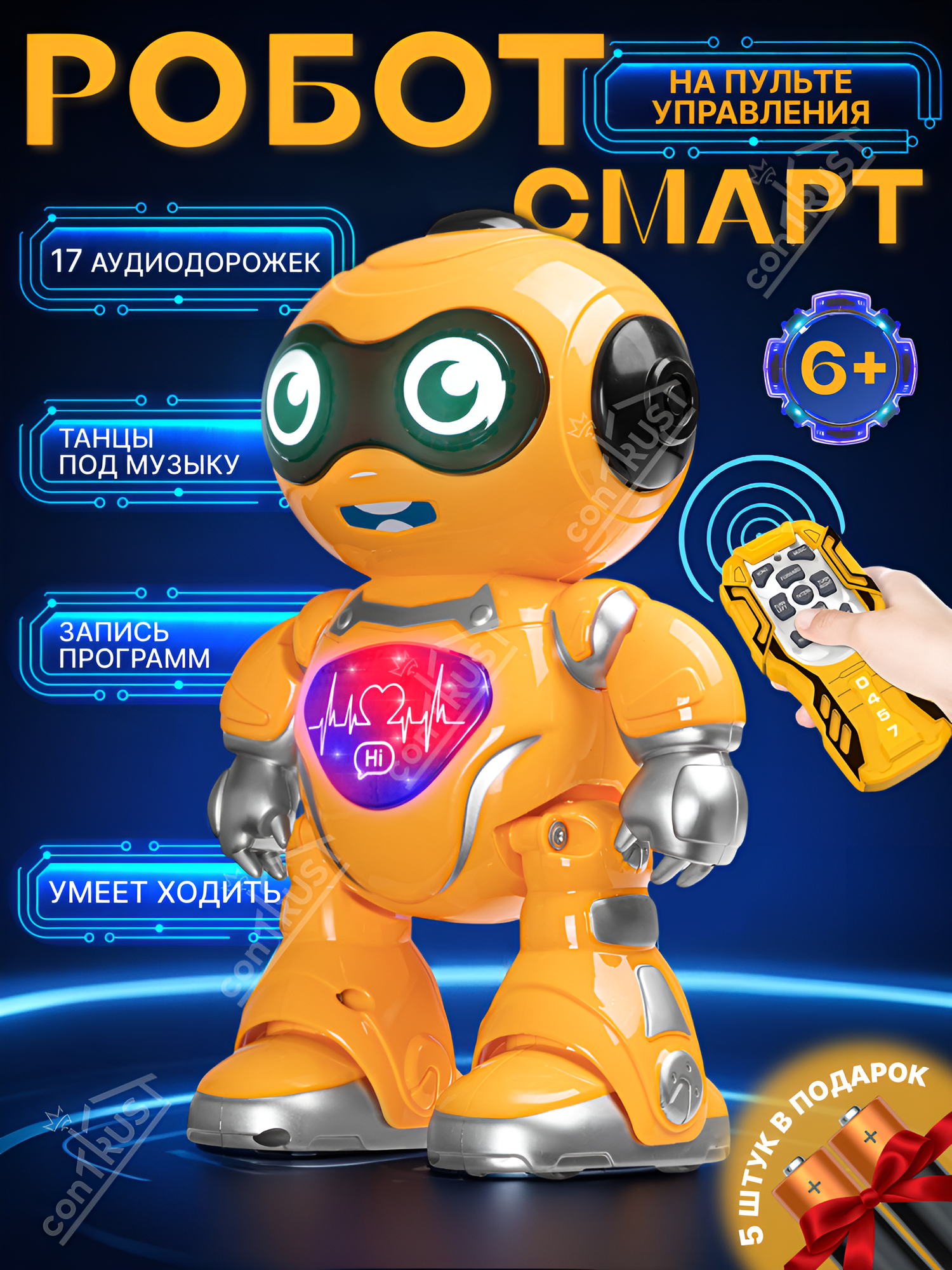 Робот интерактивный, радиоуправляемый, подсветка глаз/корпуса, запись программ, танцует/ходит, + 5 батареек в подарок: сравнение цен, характеристики, фото, актуальное наличие и цены.