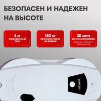 В комплекте с роботом идут страховочный шнур длиной 4 метра и адаптер питания с удлинителем длиной 4,5 метра. Он оснащен мощной турбиной, которая позволяет мыть окна любой толщины с обеих сторон, и силой сцепления 7 кг.