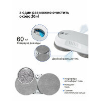 - Данный мойщик окон робот с распылением оснащен большим резервуаром для жидкости – 60 мл, объема резервуара хватит на очистку поверхности в 20 м².
