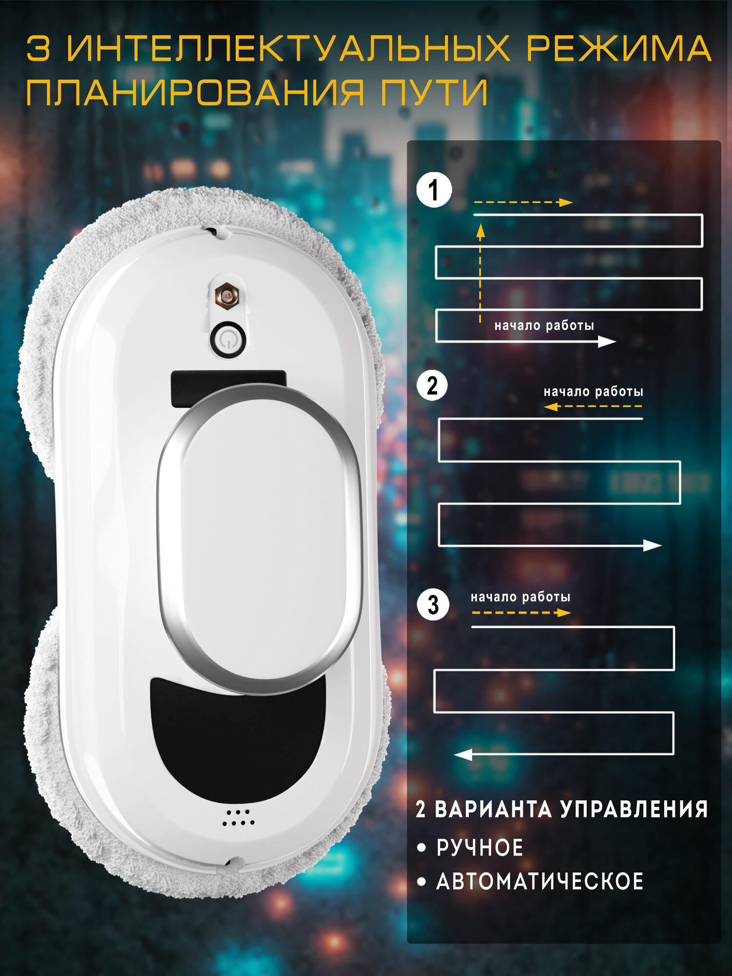 Робот пылесос для мытья окон о имитирует ручную мойку окон. Специальные чистящие диски робота для мойки окон повторяют движения рук, что позволяет добиться наиболее качественного результата.