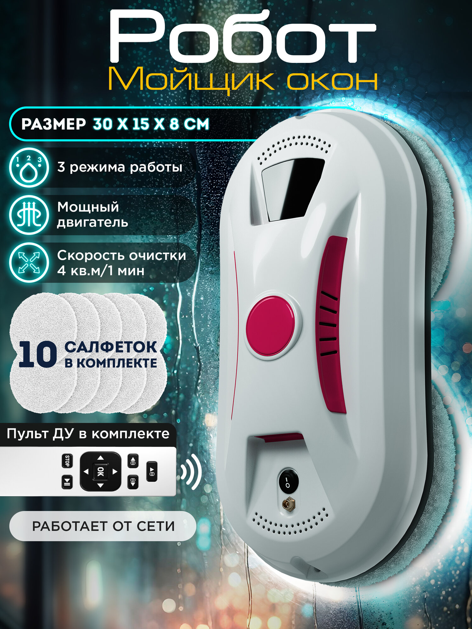 - Просто поместите робот окон мойщик на нужную поверхность, выберите один из 3-х режимов автоматической уборки и запустите мойщик окон на магните с помощью пульта дистанционного управления.