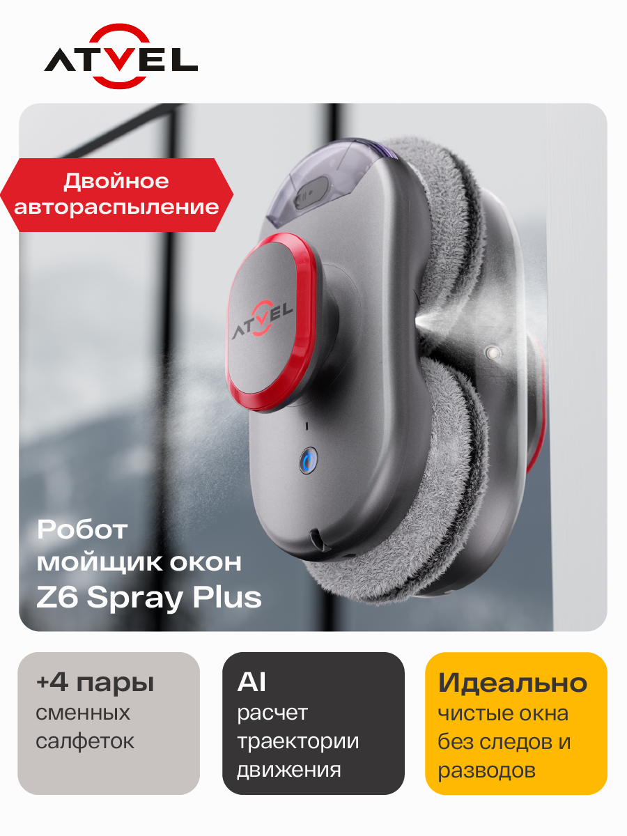 Гироскопический модуль обеспечивает полный контроль над перемещением мойщика. Предварительное определение оптимального маршрута значительно повышает эффективность работы устройства, позволяя тщательно обработать всю площадь без пропусков. Главная цель — оптимизировать маршрут движения робота для достижения максимальной результативности и сокращения времени уборки. Мощный Atvel Zorro Z6 Spray Plus также самостоятельно определяет границы окон и автоматически возвращается к начальной точке после завершения процесса очистки.